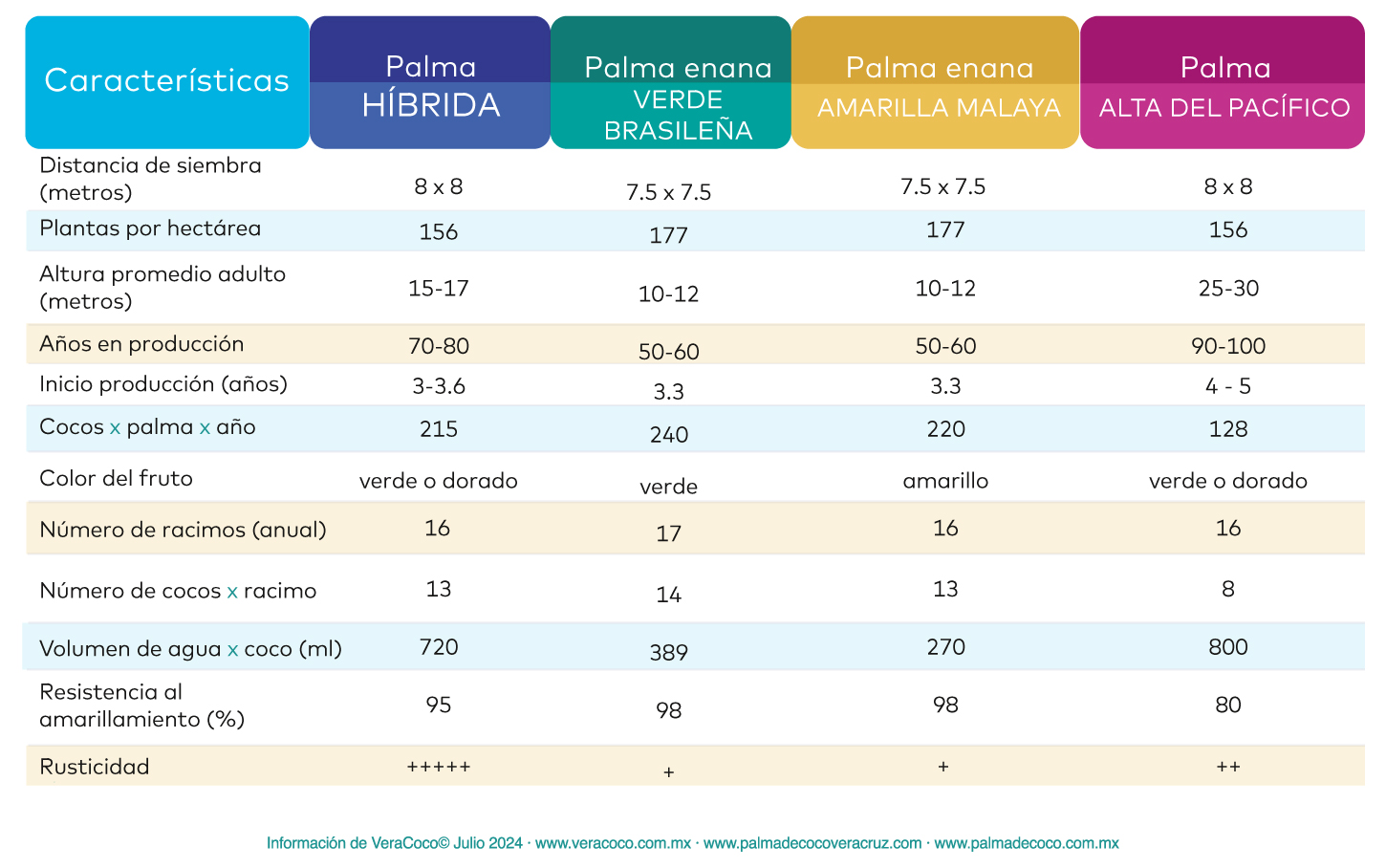 Nuestra huerta madre en el campo Las Chorreras está formada por un total de 500 Palmas Enana Amarilla Malaya y 100 Palmas Alta del Pacífico Ecotipo 2, sembradas en un diseño tresbolillo de 8 x 8 metros.