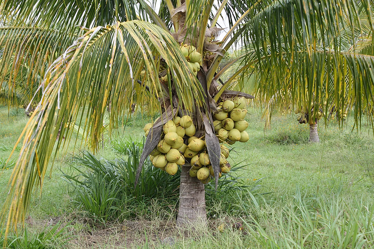 Nuestra huerta madre en el campo Las Chorreras está formada por un total de 500 Palmas Enana Amarilla Malaya y 100 Palmas Alta del Pacífico Ecotipo 2, sembradas en un diseño tresbolillo de 8 x 8 metros.